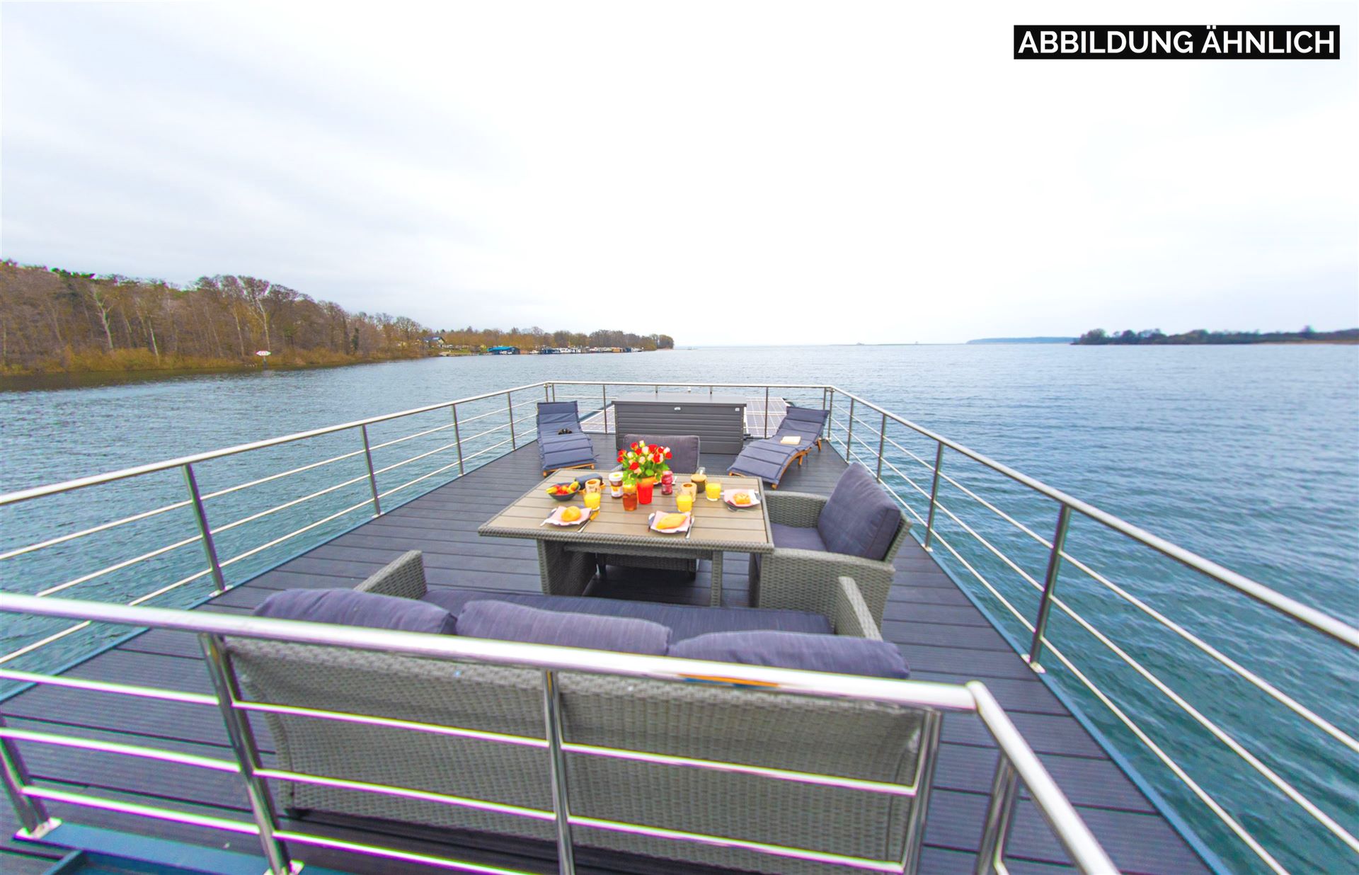 Das großzügige und lichtdurchflutete Hausboot überzeugt mit elegantem Interieur und hochwertigen Materialien. Große Panoramafenster eröffnen einen einmaligen Blick auf die malerische Seenlandschaft der Müritz. Das durchdachte Raumkonzept bietet Platz für bis zu sechs Personen – perfekt für Ihren nächsten Urlaub auf dem Wasser.