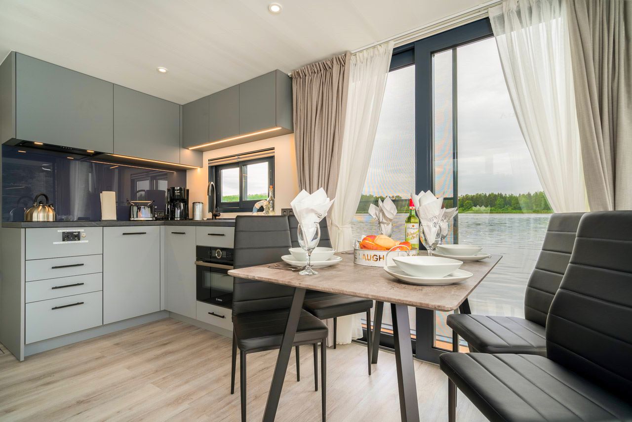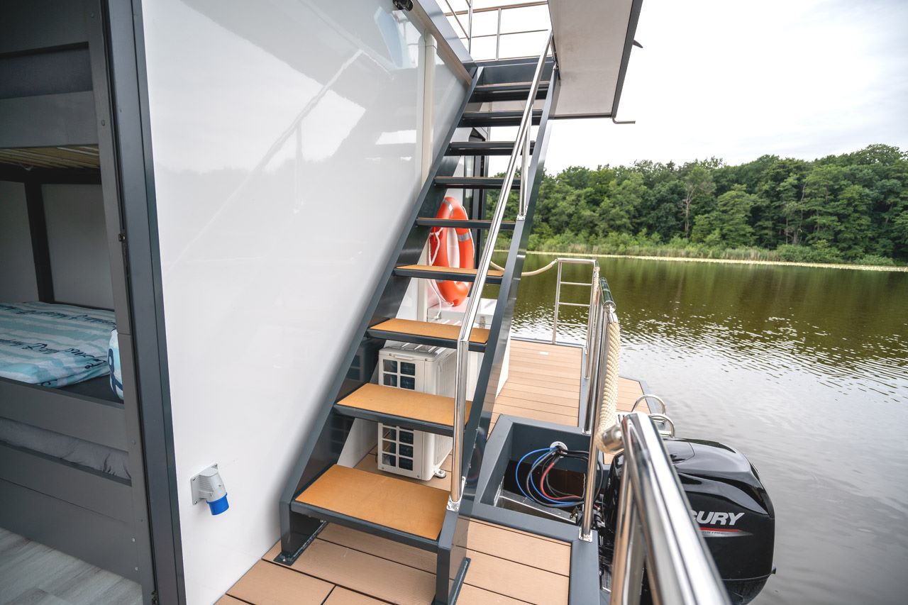 Dieses hochwertige Hausboot wurde 2022 fertiggestellt und es können auf den 36 Quadratmetern Wohnfläche (2 Schlafzimmer, Wohnbereich mit Eck-Küche und Essbereich sowie 1 Badezimmer), 4 bis 6 Personen einen großartigen Urlaub auf dem Wasser verbringen.
