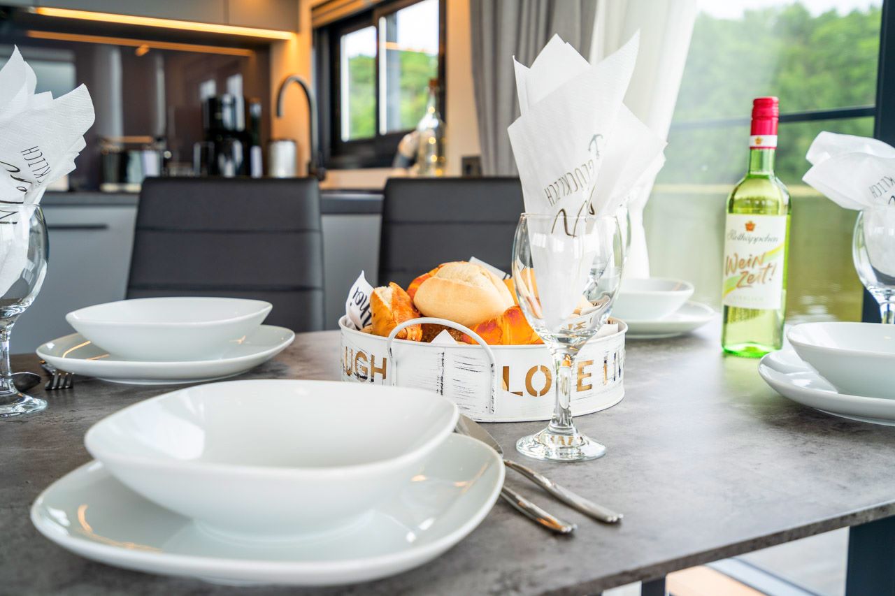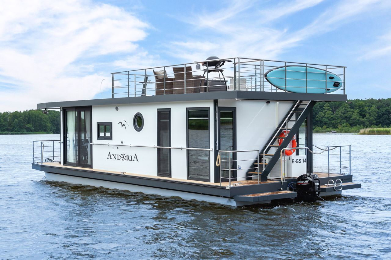Auf dem Hausboot „Andoria“ vereinen sich hoher Wohnkomfort mit schlichter Eleganz und hoher technischer Standard mit Naturverbundenheit.