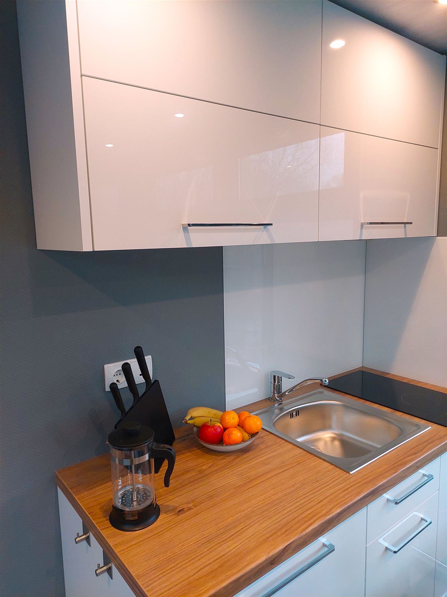 „Bellevue“ verfügt über ein Schlafzimmer mit einem Doppelbett (1,40 m x 2,00 m) und einem darüber befindlichen Hochbett (0,90 m x 2,00 m). Der Raum ist mit einem Schrank und kippbaren Fenstern ausgestattet, sowie mit einem Flachbild-TV, damit Sie auch gemütlich im Bett fernsehen können, wenn Sie das möchten. Mit drei festen Schlafplätzen in einem Schlafraum ist es das perfekte Mietboot für einen ausgiebigen Urlaub als Paar oder eben für eine kleine Familie.