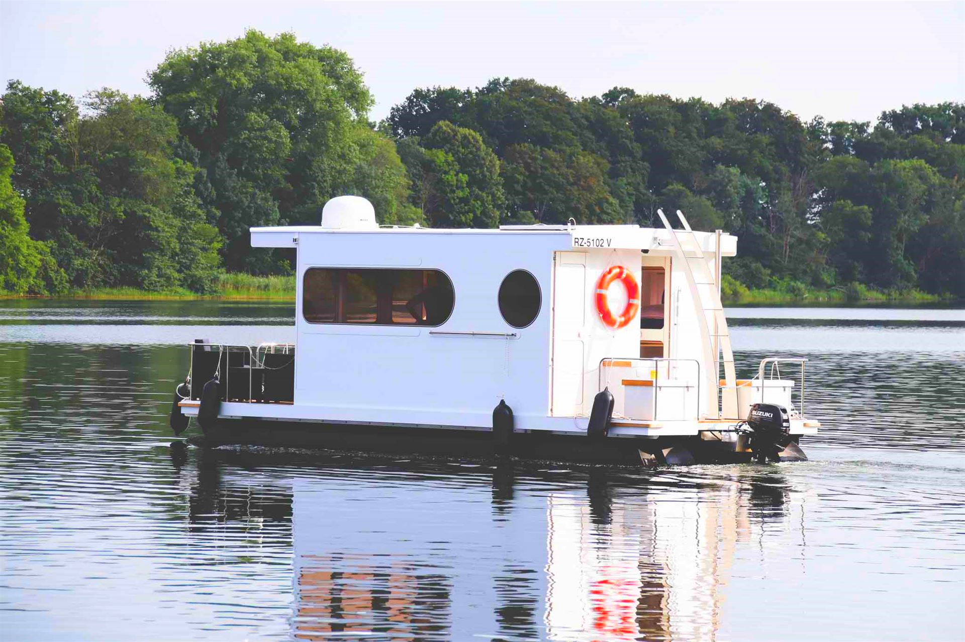 Bereit für einen Hausbooturlaub zu Zweit? Dann zögern Sie nicht, sondern nutzen Sie die Chance, dieses wunderschöne Hausboot führerscheinfrei auf der Müritz zu mieten.