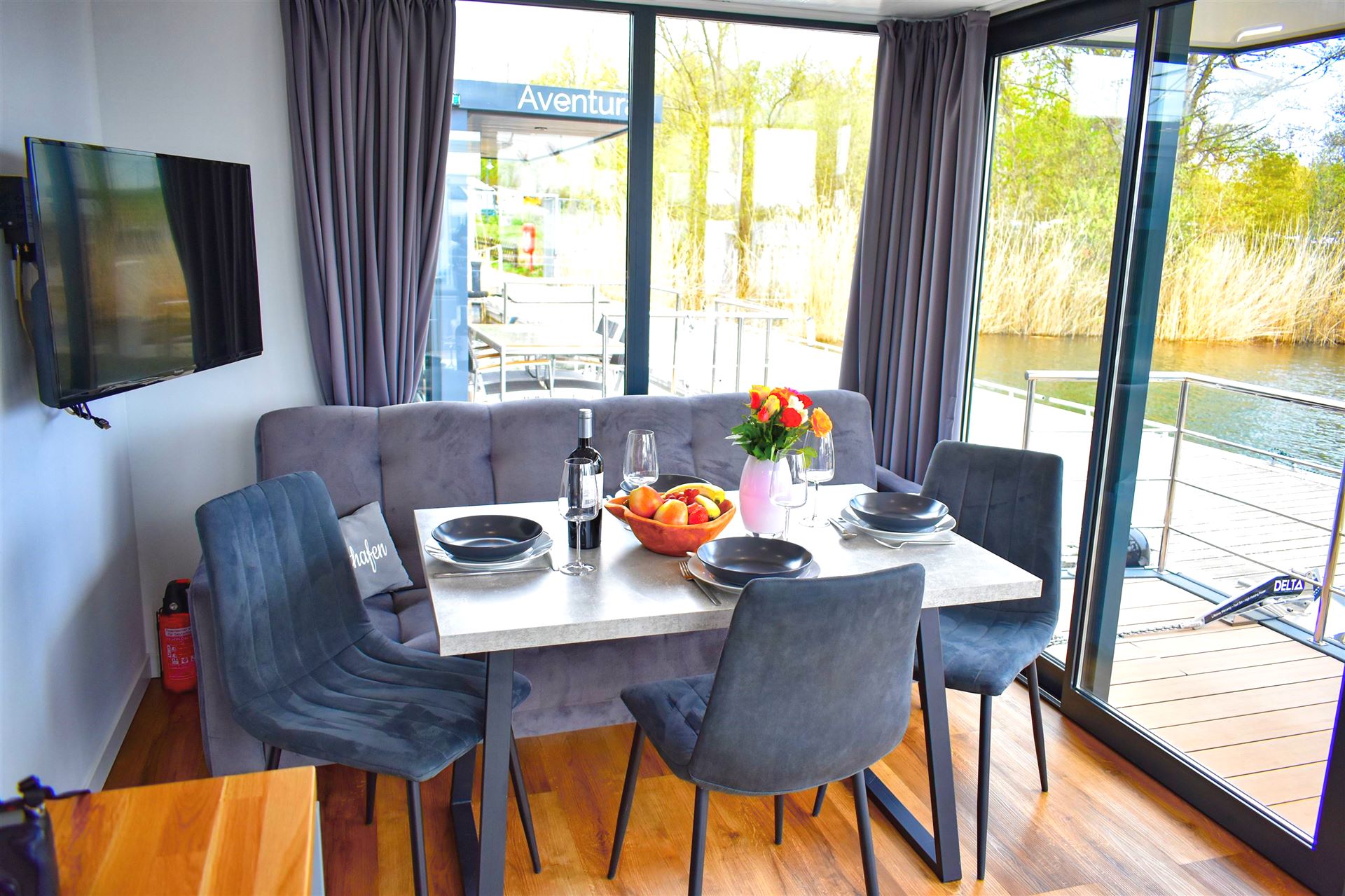 Das liebevoll eingerichtete Hausboot „LuLe 1“ verfügt über 30 m² Wohnfläche und ist mit Liebe zum Detail ausgestattet.
