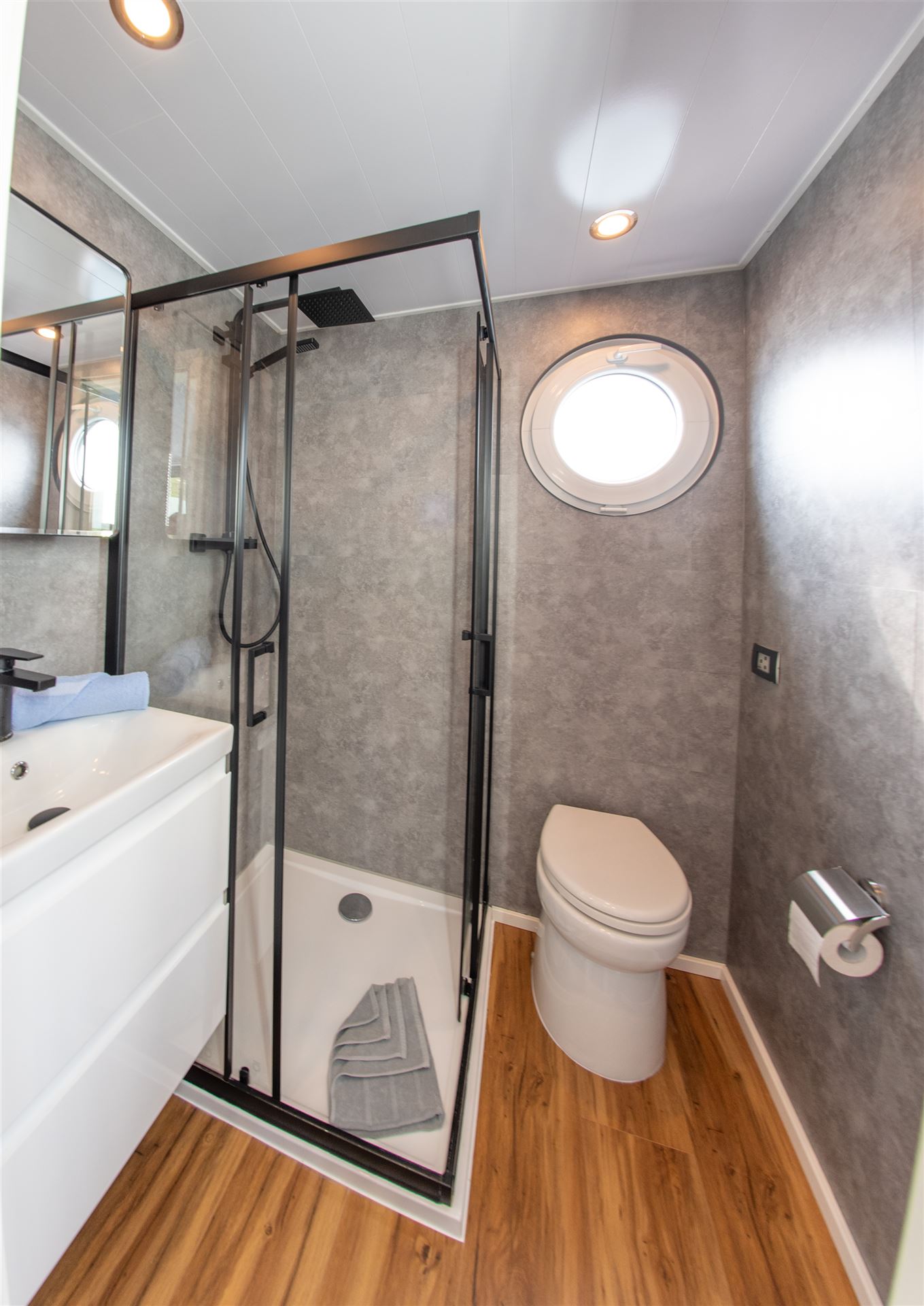 Das Bad auf dem gemieteten Hausboot ist mit Dusche, Waschtisch und einem WC ausgestattet. Ausreichend Toilettenpapier, welches für Mietboote geeignet ist, ist ebenfalls vorhanden.