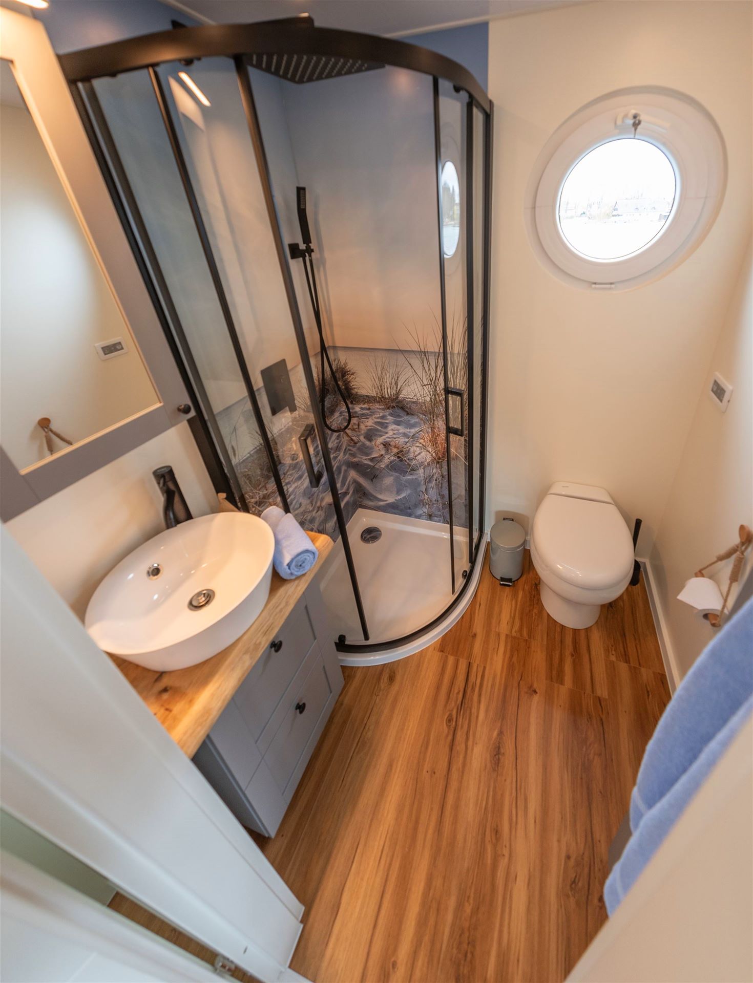 Im Bad finden Sie ein elektrisches WC, einen Waschtisch und eine Dusche. Somit haben Sie den gewohnten Komfort wie zu Hause, Ihr Hausboot lässt es an nichts fehlen.