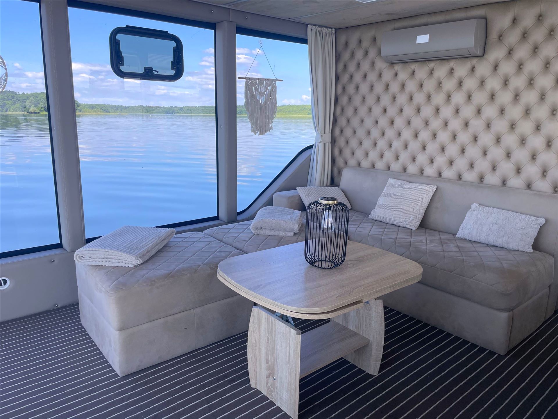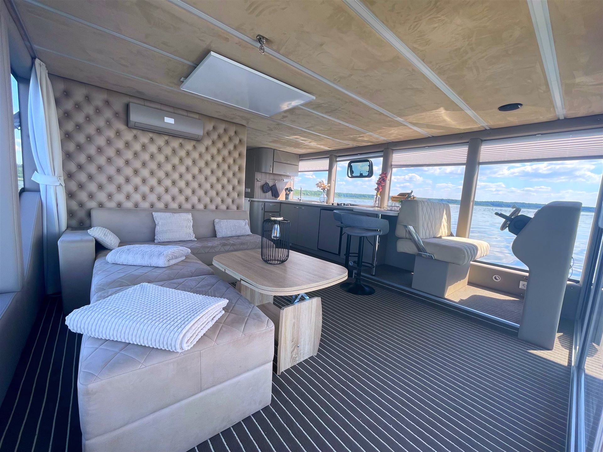 Für warme Sommertage wurde das Hausboot mit einer Klimaanlage ausgestattet und für die kälteren Tage verfügt das wunderschöne Hausboot natürlich über eine Heizung.