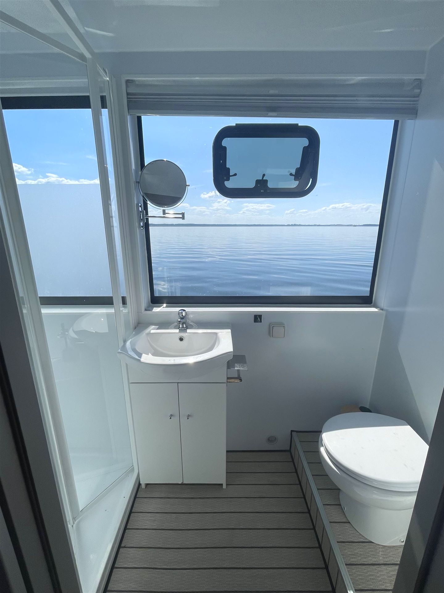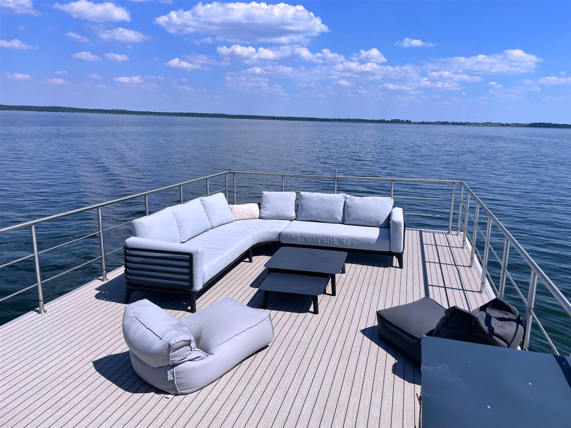 Tauchen Sie ein in eine Welt des Komforts, während die sanften Wellen unter Ihnen hinweg gleiten und Sie den Anblick der malerischen Natur des Land der 1000 Seen genießen.
