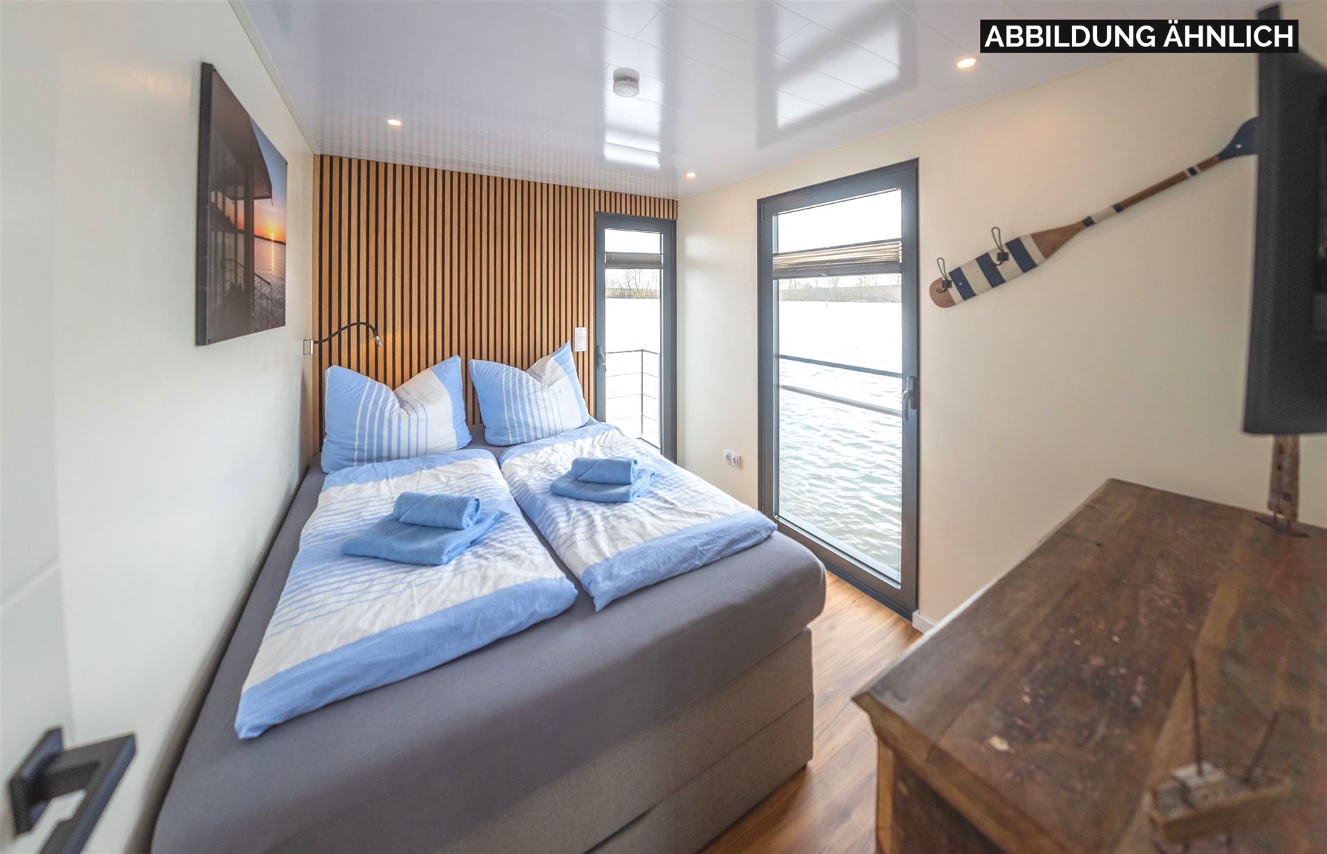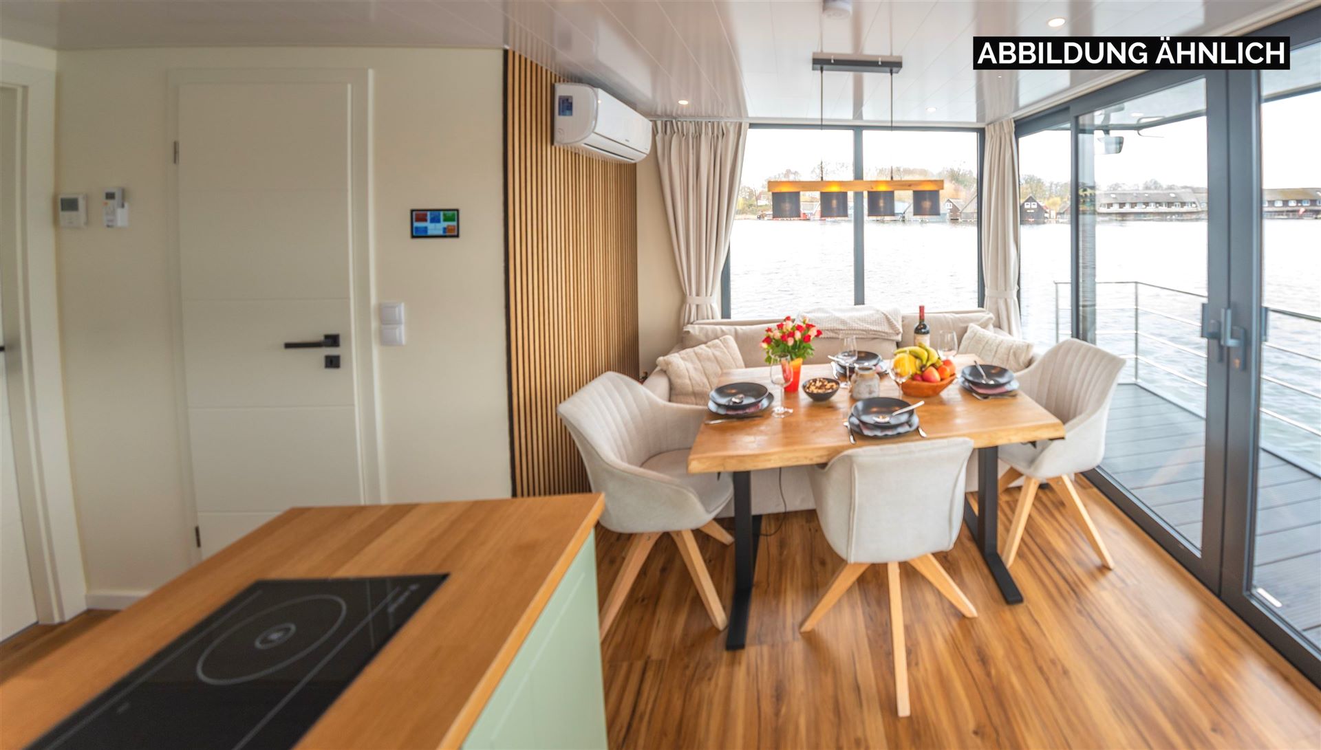 Das Hausboot Sunny ist kein gewöhnliches Boot, sondern ein vollwertiges schwimmendes Zuhause. Es erwartet Sie ein großzügiger Wohnbereich mit viel Licht und Blick aufs Wasser, zwei separate Schlafzimmer mit gemütlichen Doppelbetten, eine komplett ausgestattete Küche mit Backofen, Geschirrspüler, Kühlschrank und Kochfeld sowie ein modernes Badezimmer.